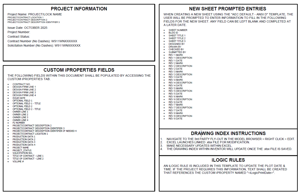 Building Information Modeling (BIM) with the Autodesk Revit Platform offers the ability to easily configure save and deploy a standard working environment. Standardizing on district neutral and project agnostic Revit template will ensure that graphic representations, data syntax, taxonomy and software environment are consistent, and that the end deliverable will satisfy industry and USACE CAD/BIM standards.